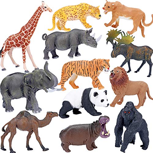 Safari Animals Figures Toys, Realistic Jumbo Wild Zoo Animals Figurines Large Plastic African Jungle Animals Playset with Elephant, Giraffe, Lion, Tiger, Gorilla for Kids Toddlers, 12 Piece Gift Set